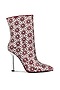 Featuring a pair of red high ankle boots in shimmer microfiber base with mirror embellishments. It has a resin sole, a cushioned insole and 4.1-inch stiletto heels.