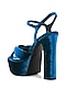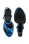 Featuring a pair of royal blue handcrafted block heels in velvet base with knotted straps and ankle strap pin buckle closure. It has a leatherette lining, a rubber sole, a padded insole and 5-inch heels.