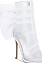 Featuring a pair of white boots in organza base with wrapped fabric details. It has a resin sole, a cushioned insole and 4.1-inch stiletto heels.