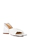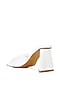 Featuring a pair of white triangular block heels in synthetic base with pleated strap pattern and a cushioned insole. It has a synthetic lining, a TPR sole and 3.1-inch heels.