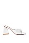 White Synthetic Pleated Strap Block Heels