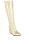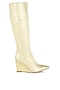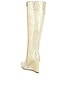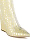 Featuring a pair of yellow boots in faux leather base with print, tear shaped metallic detail and zipper closure. It has a TPR sole, cushioned insoles and 3.5-inch slim wedge heels. Style it with a cocktail dress or trench coat for any event, a must-have addition to your shoe collection.