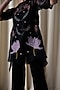 Featuring a black top in silk organza base with lotus embroidery. It is paired with a cotton satin bustier and premium crepe trousers. Accentuate it with stud earrings and heels for a complete look.