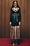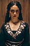 Featuring a black jacket in silk organza base with floral embroidery. It is paired with a cotton satin bustier, organza skirt and a belt. Accentuate it with stud earrings and heels for a complete look.