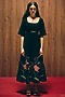 Black Silk Organza & Premium Crepe Embroidered A-Line Dress
