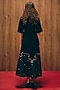 Featuring a black A-line dress in silk organza and premium crepe base with a deep U-neckline, side pockets, concealed back zip, bell sleeves hand and machine embroidery. It is paired with a cotton satin inner. Accentuate it with stud earrings and heels for a complete look.