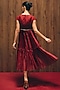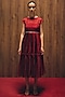 Featuring a carmine red dress in silk organza and organza base. It is paired with a cotton satin inner. Accentuate it with stud earrings and heels for a complete look.