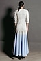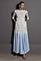 Featuring an ivory and blue ombre dress in egyptian cotton base with three-quarter sleeves and embroidery. Style it with statement jewellery and flats for a complete look.