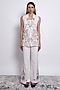 Featuring an ivory blazer in tencel base with a sculpted lapel, an embroidered back tie-belt and embroidery. It is paired with a bustier and trousers. Accentuate it with zircon and swarovski jewellery, embellished heels and a box clutch for a sangeet or cocktail ceremony.