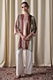 Featuring a multi-colored kurta in satin organza base with with a keyhole neckline and pearl accents. It is paired with crepe straight pants. Accentuate it with dangler earrings and block heels for festive or sangeet ceremonies.