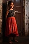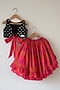 Featuring a black bandhani top for girls in handwoven cotton base with tie-up detailing. It is paired with a pink and orange checkered lehenga having pocket detail. Style it with sandals and hair accessories for festive occasions or rakhi celebrations.
