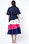 Featuring a midnight blue tiered dress in poplin base with color-blocking.