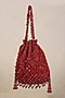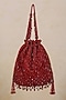 Featuring a carnelian red potli in satin base with semi-precious gems, japanese micro beads, and crystals hand embroidery. It comes with a detachable long chain handle having diamante embroidery and has a suede lining.