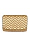 Featuring a champagne flapover clutch in faux suede base with japanese metallic microbeads hand embroidered chevron pattern. It has satin underlining.