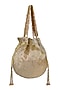 Featuring a gold potli in satin base with rhinestones and japanese micro beads hand embroidery. It has satin underlining.