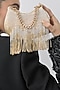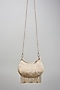 Featuring a golden clutch in satin base with tassels, crystal and japanese micro bead hand embroidery. It has soft suedette lining. Perfect to carry for wedding celebrations or festive occasions.