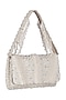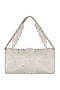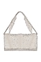 Featuring an ivory flap-over clutch in satin base with japanese beads, freshwater barouqe pearls, rhinestones, and an embellished handle. It has a crossbody chain and a suedette lining.