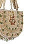 Featuring a multi-colored pastel-hued pouch in velvet base with semi-precious quartz, stones, kundans, and japanese beads embroidery including asymmetrical tassels. It has a crossbody chain and a suedette lining.