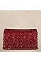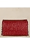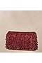 Featuring a red flapover clutch with semi precious gems, japanese micro beads and crystals hand embroidery. It has a suede underlining and a long chain handle.
