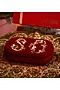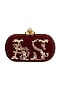 Featuring a ruby red clutch bag in velvet base with a hand embroidered calligraphy monogram. It has a satin lining and a long sling chain.