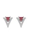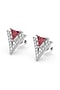 Anti-Tarnish White Finish Diamond & Ruby Stud Earrings In Sterling Silver