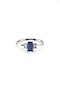 Featuring a white finish ring studded with 0.2ct lab-grown baguette-cut diamonds and sapphire stone, set in 92.5 sterling silver. Perfect for elevating cocktail evenings or adding sparkle to celebratory dinners.