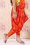 Featuring an orange dhoti saree in cotton base with foil work. It is paired with a contrasting yellow embroidered blouse having cold shoulder.