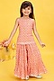 Featuring a peach sleeveless kurta for girls in cotton base with square neckline. It Is paired with a wrinkled skirt having elasticated waist. Perfect wear for festive occasions or wedding.