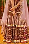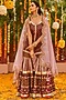 Featuring a brown kurta in mul satin, silk organza, and swiss cotton base. It is paired with matching sharara pants and a dupatta.