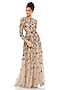 Featuring an antique rose illusion gown in tulle base with floral applique embellishment and long sleeves. Accentuate it with statement jewellery and heels for dangler earrings and heels for a destination wedding or party.