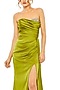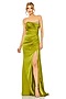 Featuring an apple green strapless gown in satin and polyester base with a sweetheart neckline and rhinestone embellishments. Accentuate it with statement earrings and heels for an evening look or cocktail party.