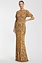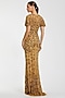 Featuring a beige high-neck gown in mesh base with flutter sleeves and gold embellishments. Style it with statement dangler earrings, a sleek clutch, and heels, perfect for galas, weddings, or the red carpet.