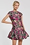 Featuring a black mini dress in brocade base with cap sleeves and ruffled hem. Accentuate it with statement earrings and heels for evening soirees.