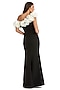 Featuring a black and cream gown in jersey and polyester base with 3D floral detail. Accentuate it with pearl earrings and heels for evening soirees or cocktail parties.