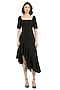Featuring a black asymmetric ruffled midi dress in crepe and polyester base with a square neckline and a concealed back zipper. Accentuate it with statement earrings and heels for an evening look or cocktail party.