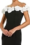 Featuring a black off-shoulder mermaid gown in crepe fabric base with 3D floral detail. Accentuate it with pearl earrings and heels for evening soirees or cocktail parties.