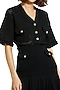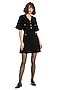 Featuring a black mini dress in crochet knit base with a v-neckline, front pockets and floral button detail. Accentuate it with statement earrings and heels for a brunch or an evening wear.