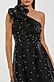 Black Organza Pearl Embellished One-Shoulder Midi Dress