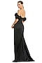 Featuring a black gown in polyester base with an off-shoulder neckline and embroidery. Style it with statement earrings and elegant heels for a refined evening look, perfect for cocktail celebrations.