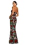 Black Polyester Floral Applique Embroidered Strapless Gown