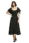 Featuring a black midi dress in polyester base with ruffled sleeves. It is paired with a belt. Accentuate it with statement earrings and heels for an evening look or cocktail party.