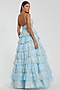 Blue Chiffon Floral Printed Tiered Ruffled Gown