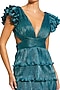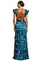 Blue Metallic Plisse Tiered Ruffled Gown
