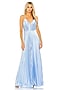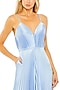 Blue Polyester Pleated Wide-Leg Jumpsuit