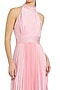 Featuring a blush pink gown in pleated satin base with a high halter neckline. Accentuate it with statement earrings and heels for evening soirees.