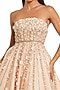 Champagne Lace Fabric Embellished A-Line Midi Strapless Dress