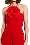 Featuring a cherry red jumpsuit in polyester base with a cross-halter neckline and intricate 3D floral detailing. Accentuate it with statement earrings and heels for evening soirees or cocktail parties.