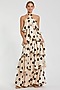 Cream & Black Charmeuse Polka Dot Printed Tiered Gown