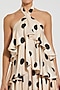 Featuring a cream and black ruffled tiered gown in charmeuse base with a criss-cross halter neckline and polka dot print. Accentuate it with dangler earrings and heels for evening soirees or cocktail parties.