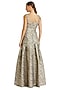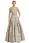 Gold Metallic Jacquard Stripe Printed Box-Pleated Gown